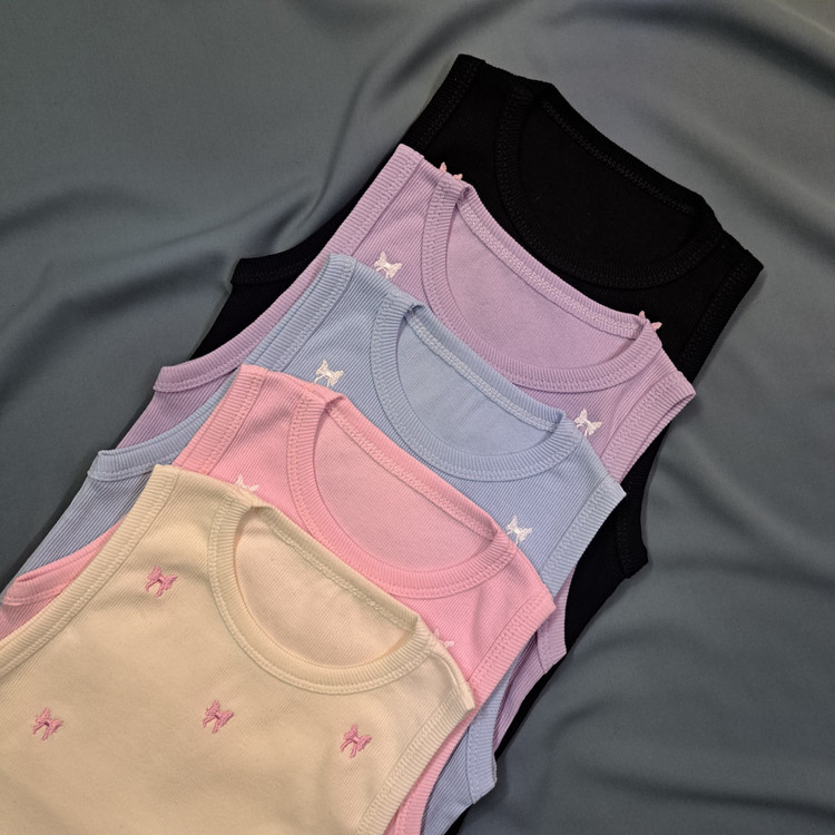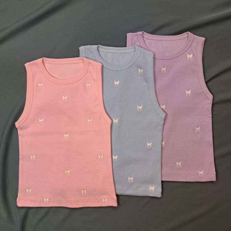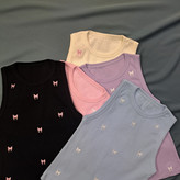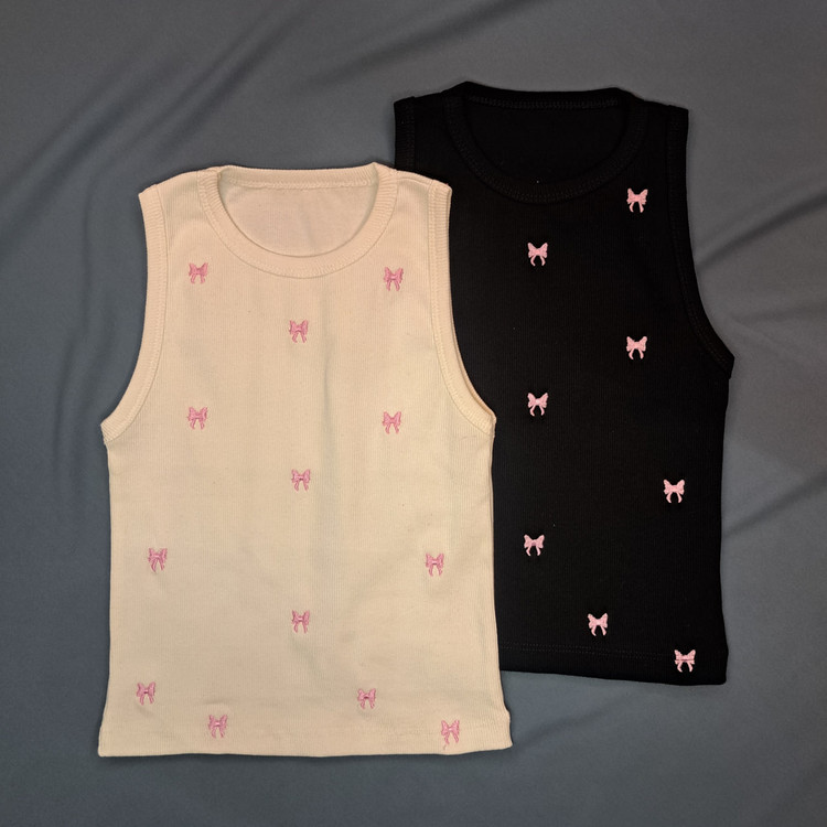- طرحهای پاپیونی ظریف: روی هر تاپ پاپیونهای کوچکی گلدوزی شدهاند که جلوهای جذاب و دخترانه به استایل شما میبخشند.